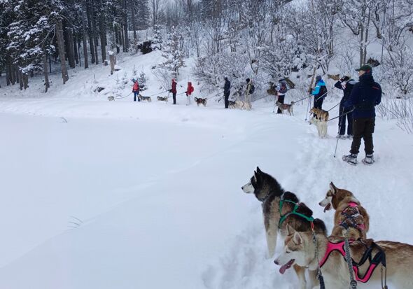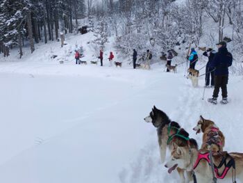 - 2 x geführte Husky Schneeschuh Trekking Tour mit Guides Lisa & Nina