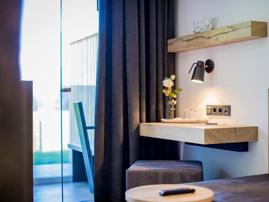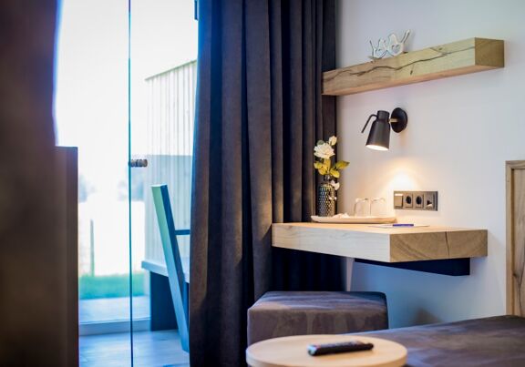 Our charmingly furnished double rooms are dominated by oak wood and warm colour tones. The large box-spring beds ensure a comfortable night's sleep and the open modern bathroom provides a pleasant living feeling. The absolute highlight here is also our panoramic infrared cabin. Summer or winter - here you can end the day pleasantly after a sporty demanding excursion. Wake up and fall asleep to a breathtaking view of the magnificent mountain scenery in the midst of nature.